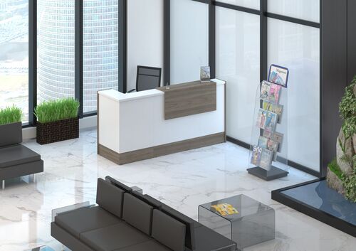 Стойки из ЛДСП стоят недорого, при этом срок их службы составляет много лет, что обуславливает высокую популярность изделий. Наша мебель для приемной отличается прекрасным качеством, полной безопасностью – ЛДСП не содержит вредных компонентов, что подтверждается сертификатами. Уход за столами и стойками очень прост, их поверхность гигиенична, легко моется, гладкая и приятная на ощупь.