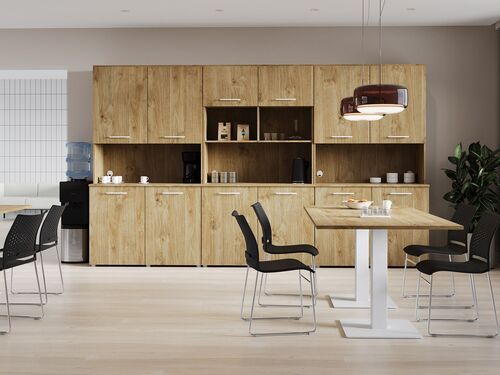 При отсутствии полноценно оборудованного уголка для приема пищи офисные сотрудники вынуждены покидать место работы в обеденный перерыв, тратить время на отстаивание очередей в кафе, столовую, да и цена комплексных бизнес-ланчей зачастую довольно высока. Если нет возможности разогреть еду, приготовить чай, кофе прямо в офисе, это может плохо сказаться на эффективности труда, поэтому думающие руководители современных компаний все чаще приобретают мини-кухни – удобное дополнение помещения, облегчающее жизнь и становящееся важным элементом корпоративной культуры.