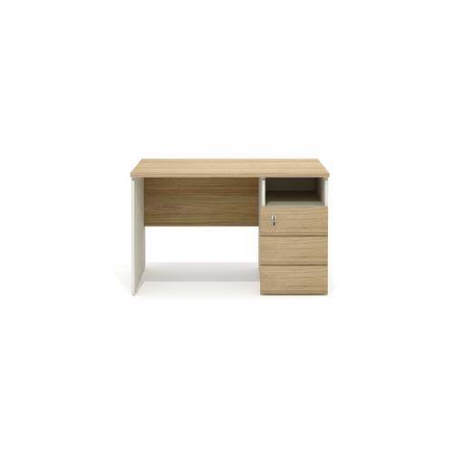 Стол прямой с тумбой R-11L Швейцарский вяз/Белый