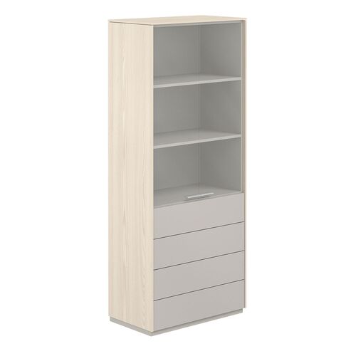 Шкаф высокий со стеклом прозрачным, 4 ящ. NZ-0322.YN.GS Ясень наварра/Серый камень