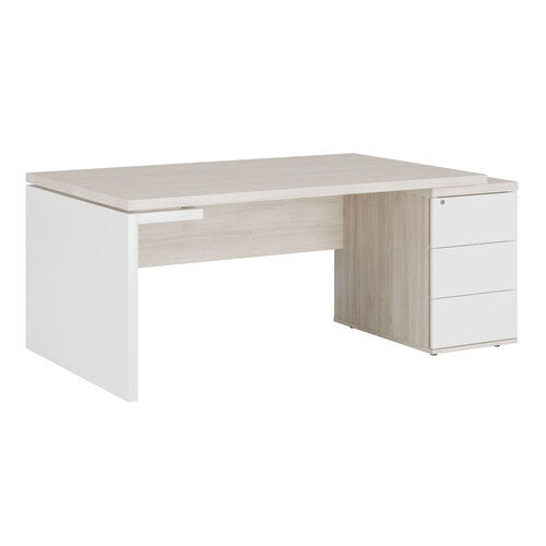 Стол рабочий на опорной тумбе (левый) ZIO285114 ZIO28511421 Дуб шамони светлый/белый