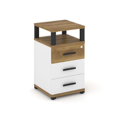 Тумба приставная 3 ящика с надставкой CN.TUP-003 A/B/W Сандал Янтарный/Белый