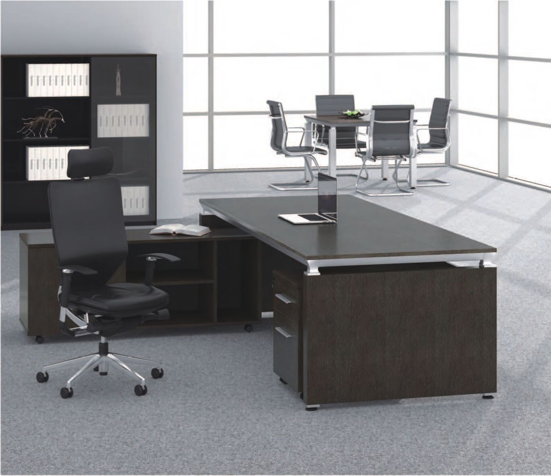 Кабинет директора Easy от производителя SUNON – это набор высококачественной мебели для оснащения офисов премиального класса. Меблировка выглядит стильно, строго и очень эффектно, во многом определяя успешность проводимых деловых переговоров, встреч, положительно влияет на имидж компании. Основные черты – четкая геометрия, лаконичность линий, а также темные оттенки, идеально соответствующие принципам классического интерьерного дизайна.