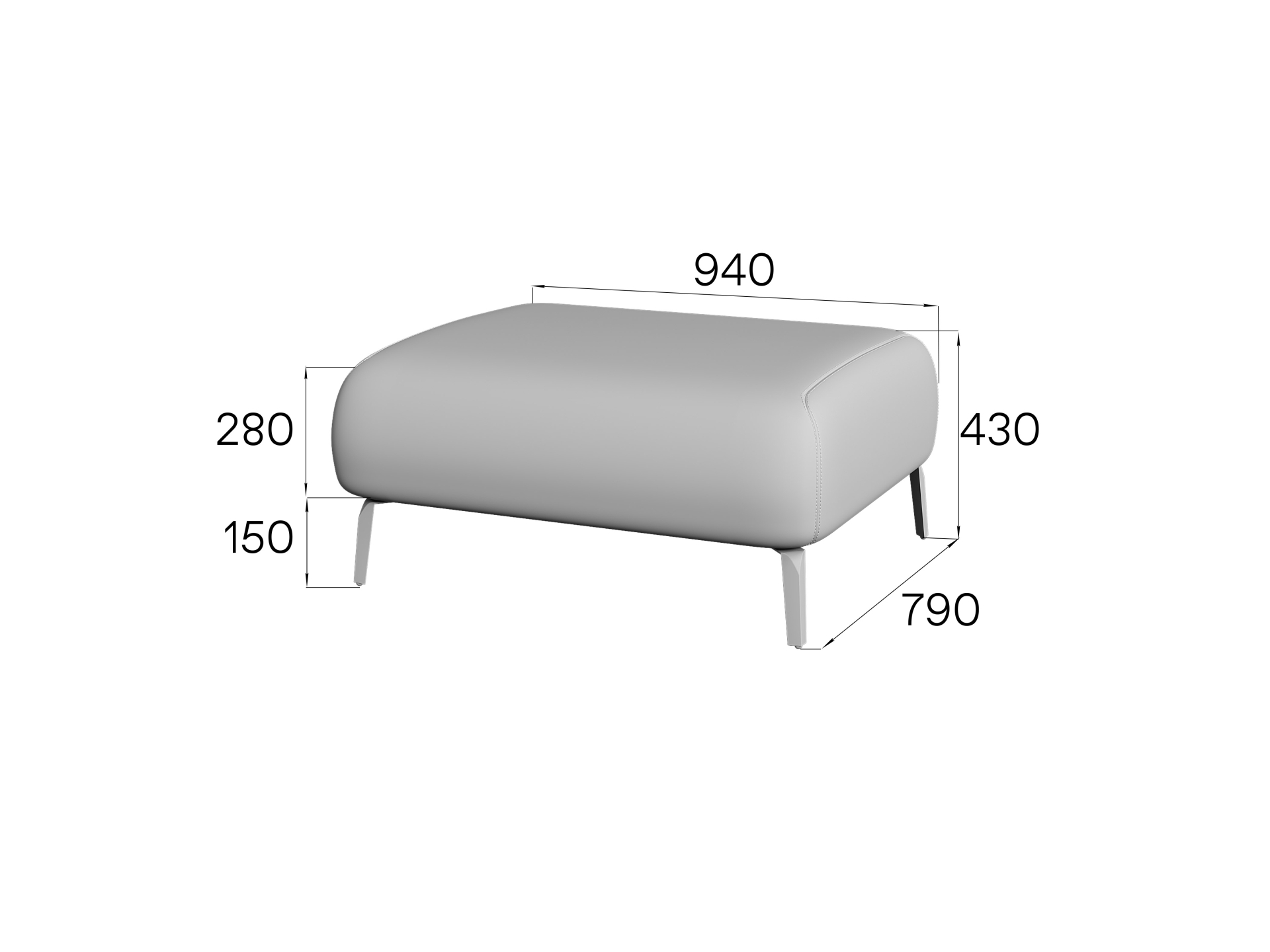 Размеры (ШхГхВ): 94x79x43 см.