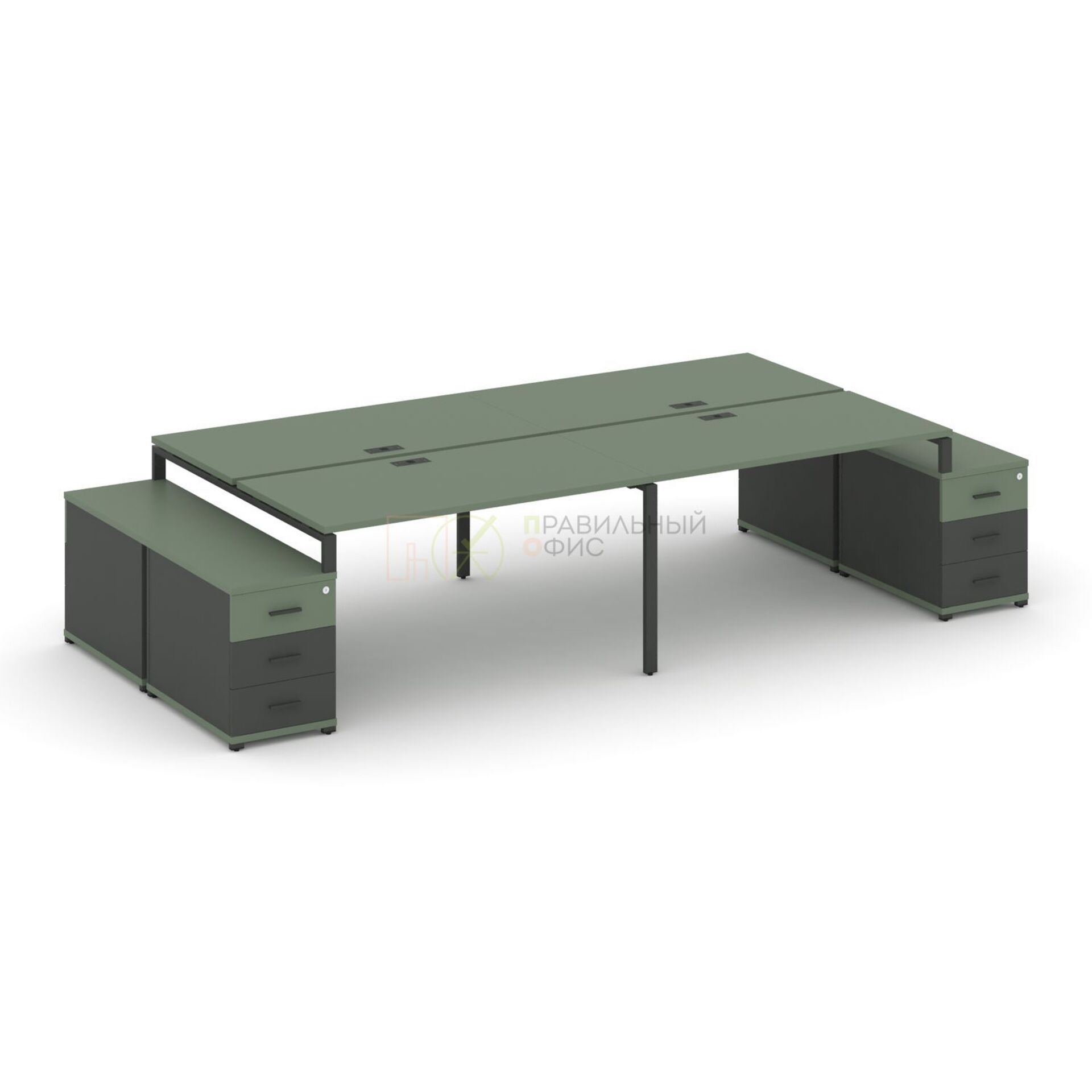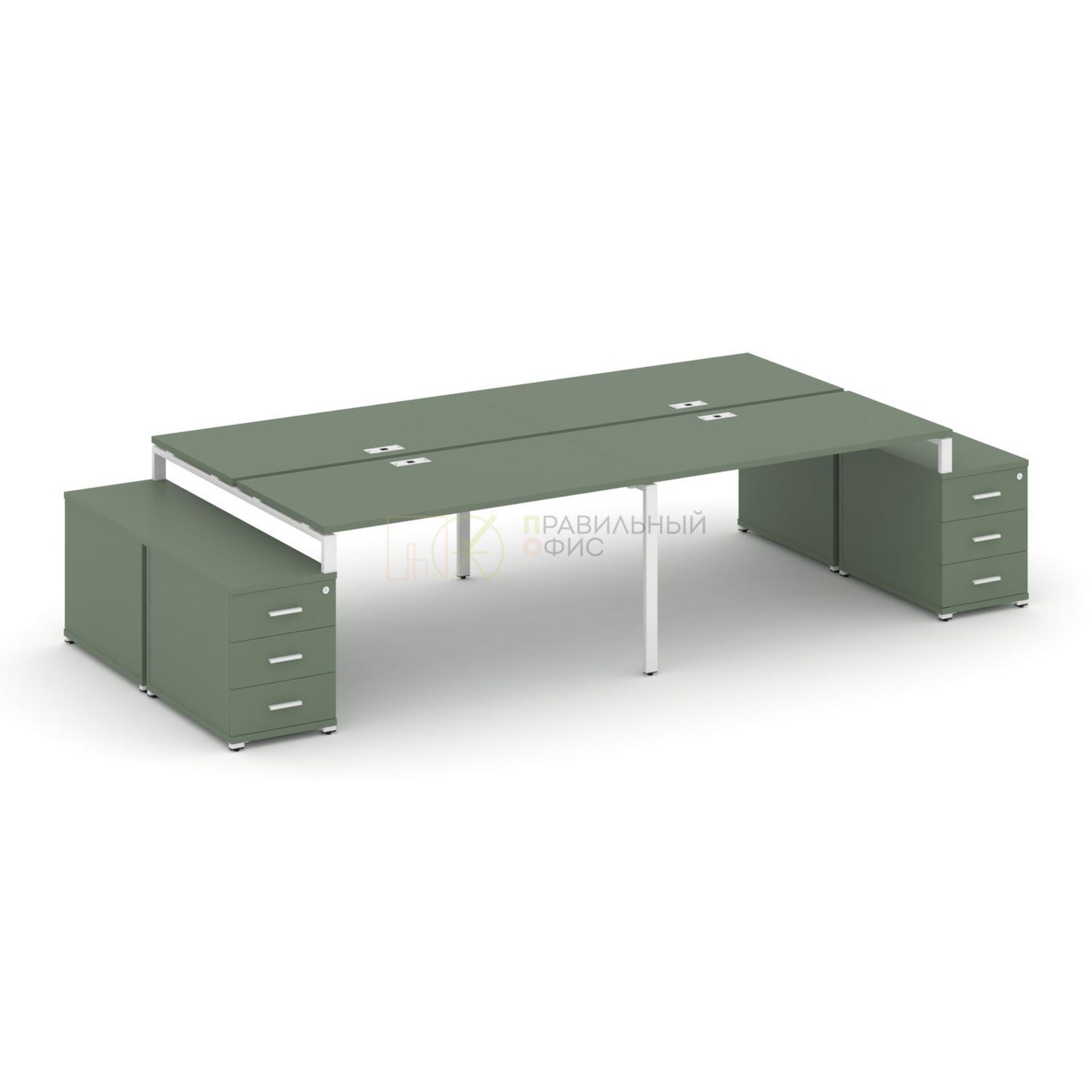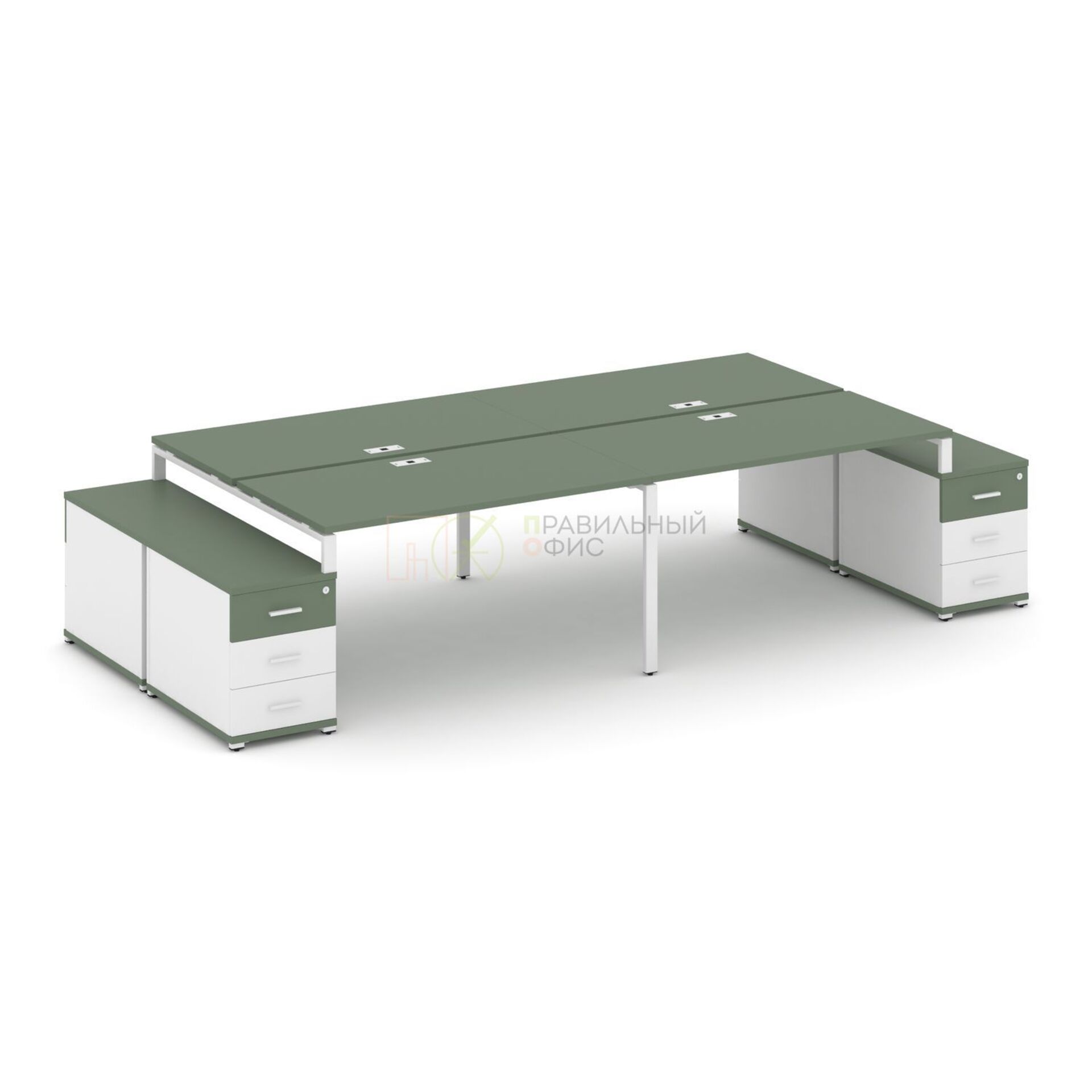 Рабочая станция на 4 места с двумя двухсторонними опорными тумбами CN.DRS-325 A/B/W