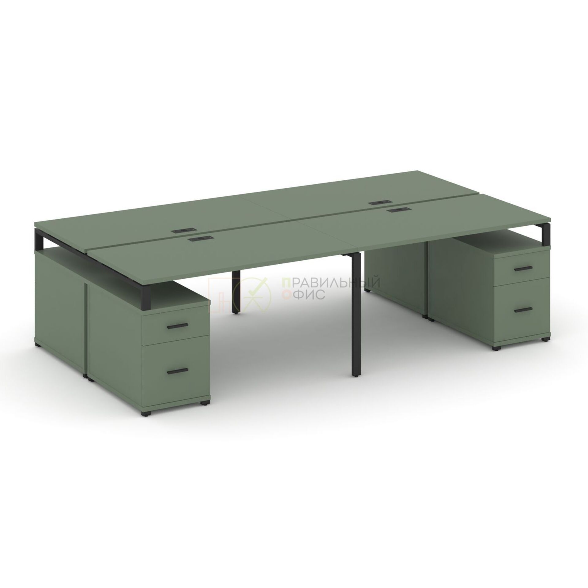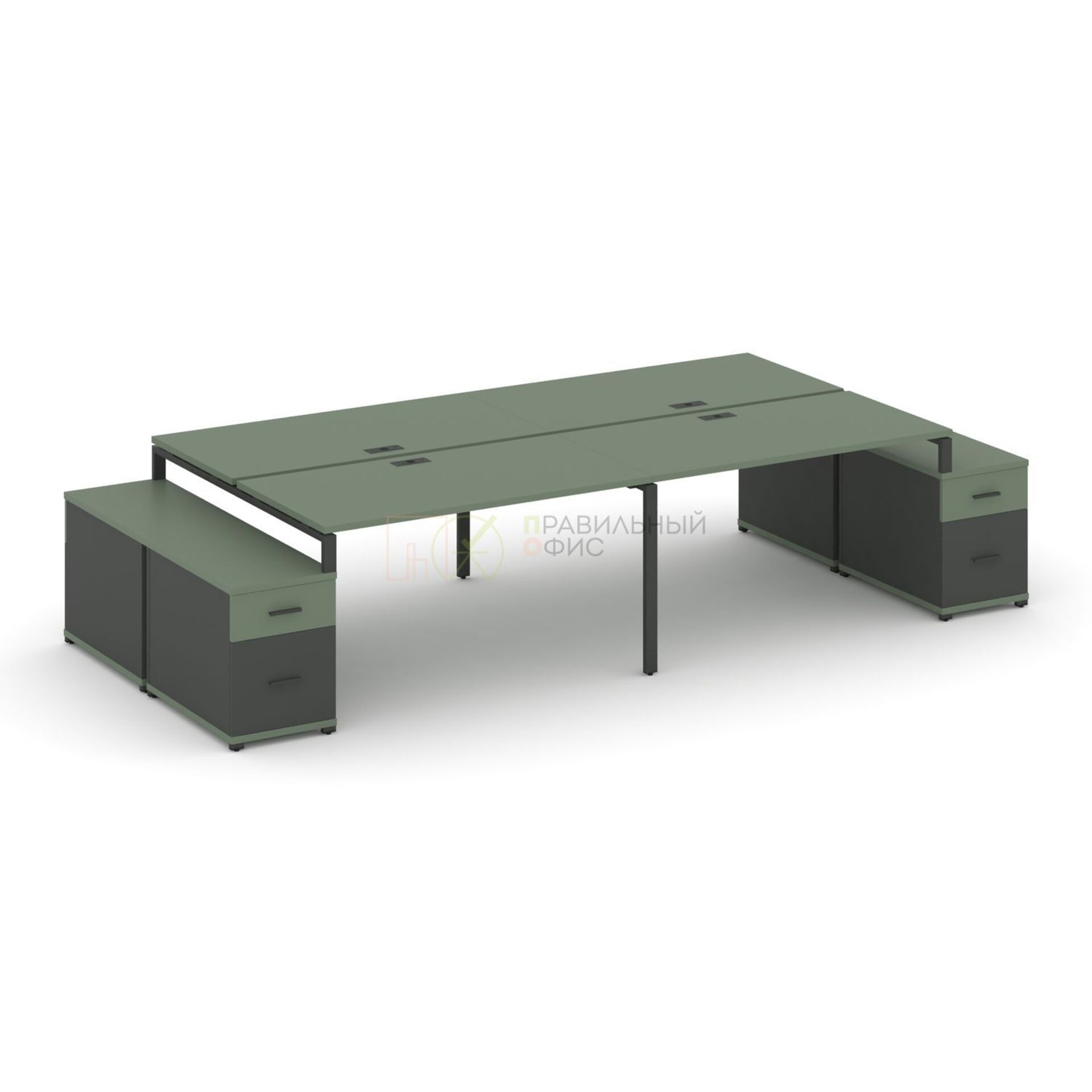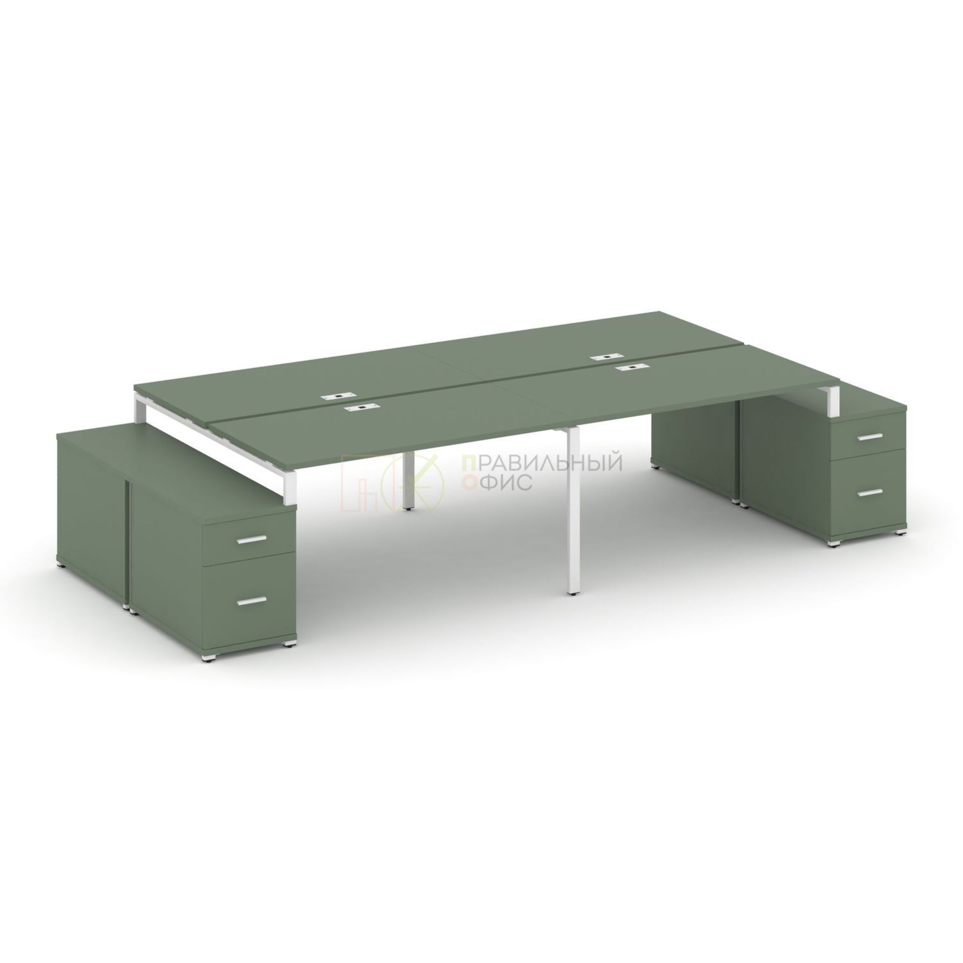Рабочая станция на 4 места с двумя двухсторонними опорными тумбами CN.DRS-329 A/B/W