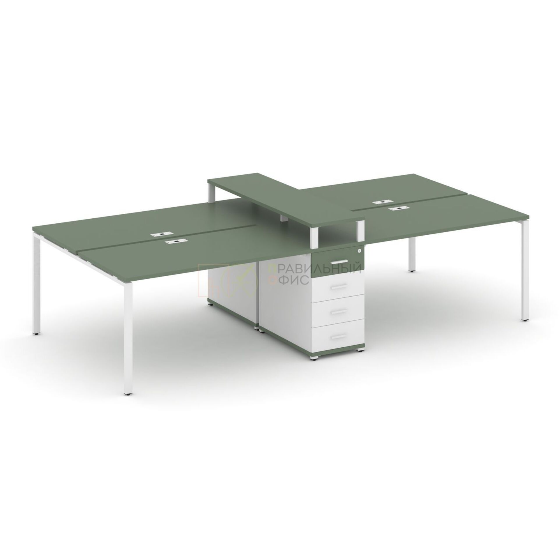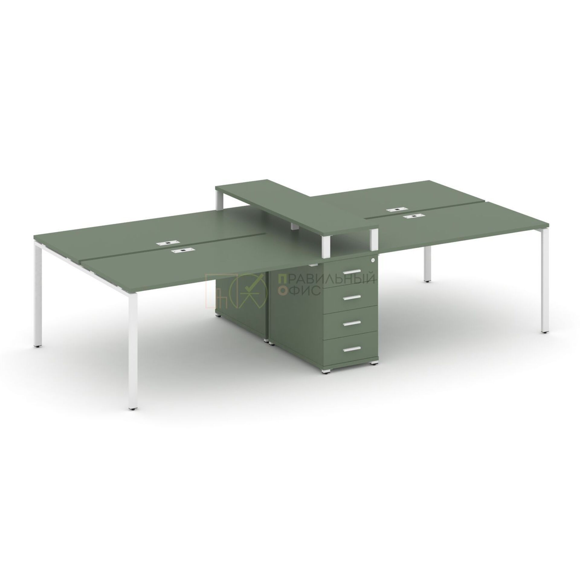 Рабочая станция на 4 места с двумя двухсторонними опорными тумбами CN.DRS-332 A/B/W