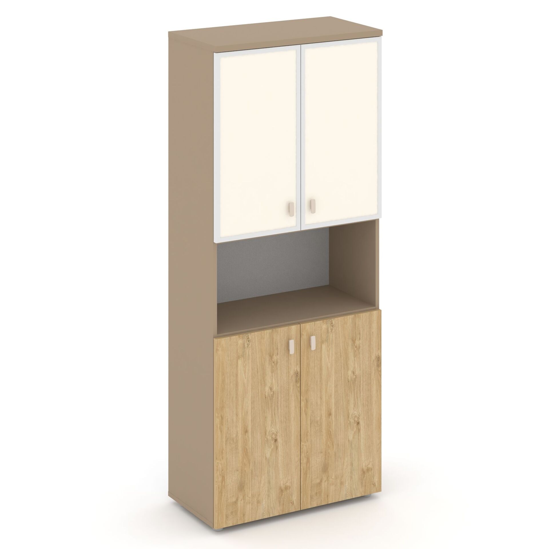 Шкаф высокий широкий (2 низких фасада ЛДСП+2 низких фасада стекло лакобель в раме) ES.ST-1.4R I