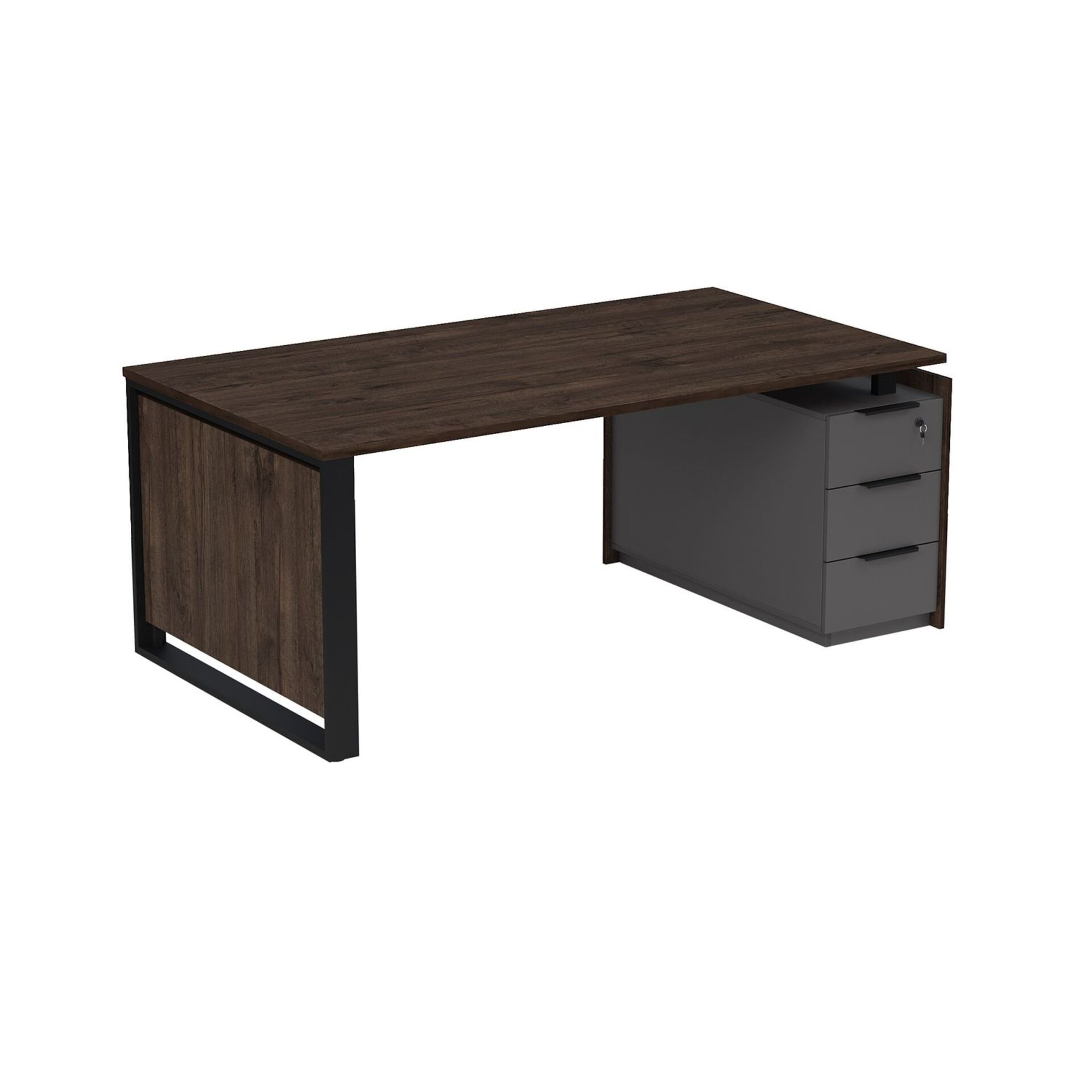 Стол рабочий на опорной двусоставной тумбе, с ящиками, с замком 15СОД-ШД.1608