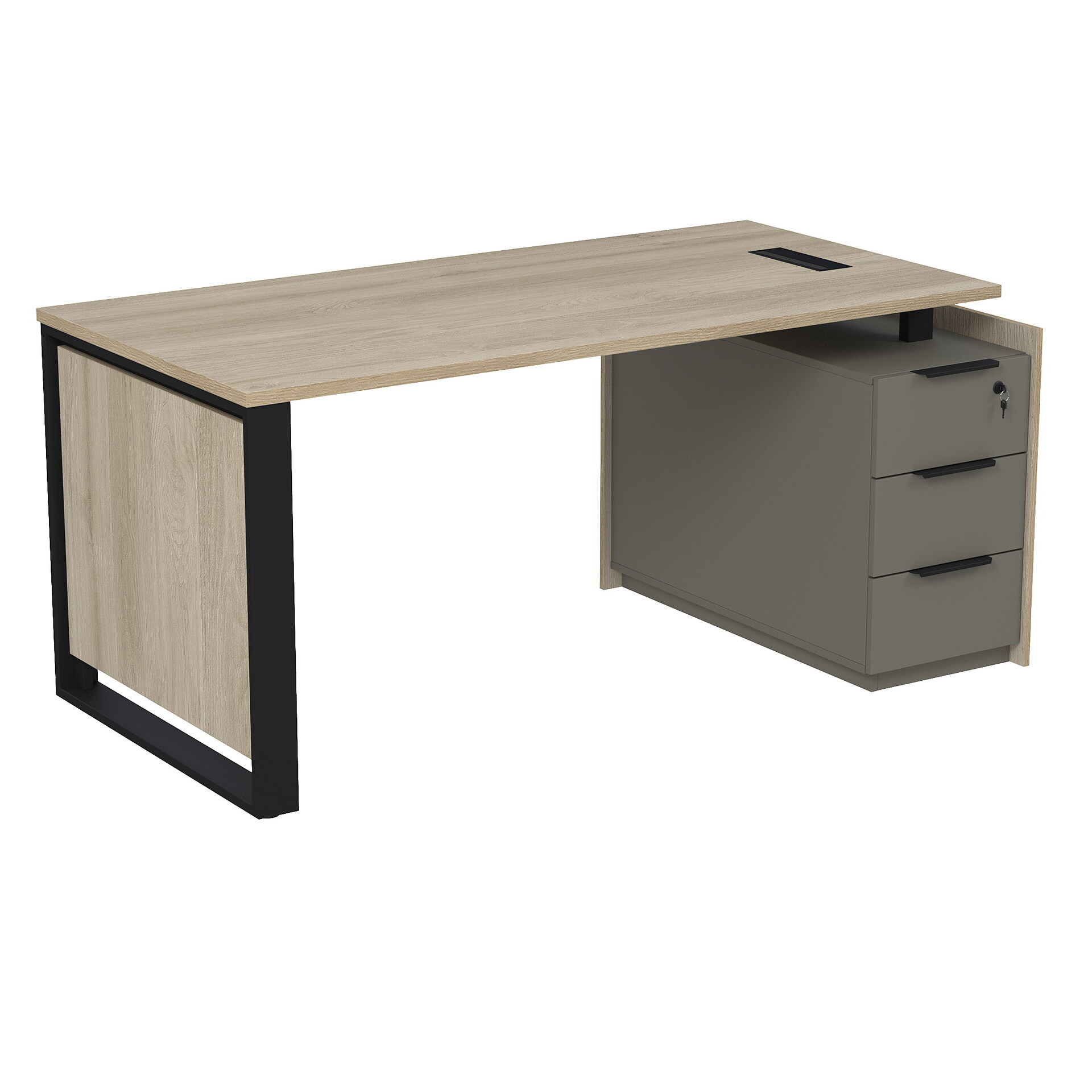 Стол рабочий с люч, на опорной угловой тумбе, с ящиками (метабокс), с замком 15СОЛУ.1608