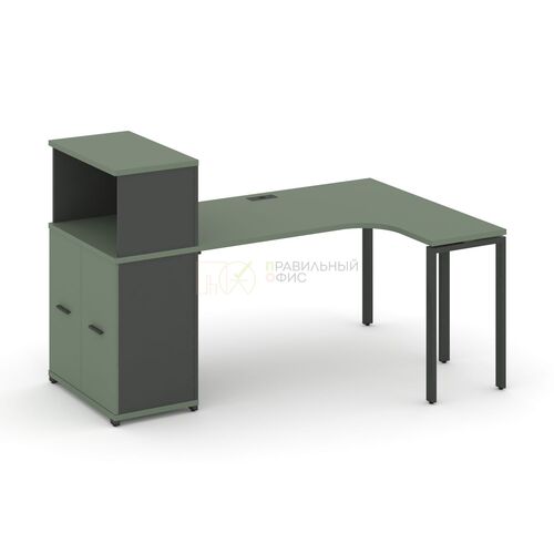 Стол эргономичный с опорным распашным шкафом с надставкой низкой правый CN.SA-214(R) A/B/W
